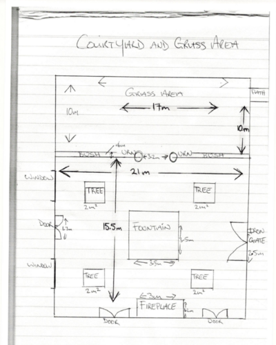 The space isn't without challenges. For one, there was a massive fountain right in the middle. But worse, there were four massive trees around the space which we can neither bind nor trim (at risk of a few thousand dollars in penalties!).
