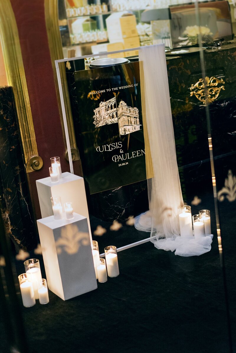 On their welcome sign, we featured the Ruins of Talisay (where he proposed) and the QVB (where they are getting married), the beginning and conclusion of their wedding journey.