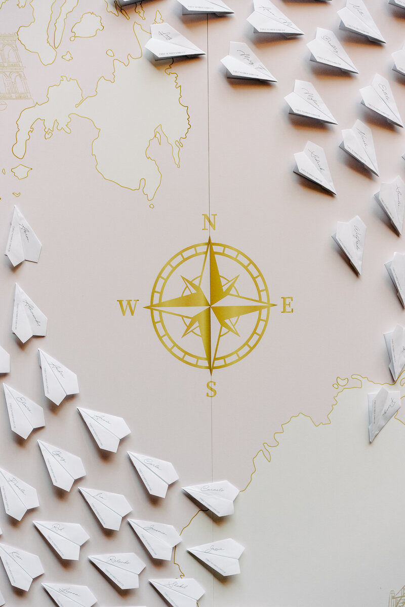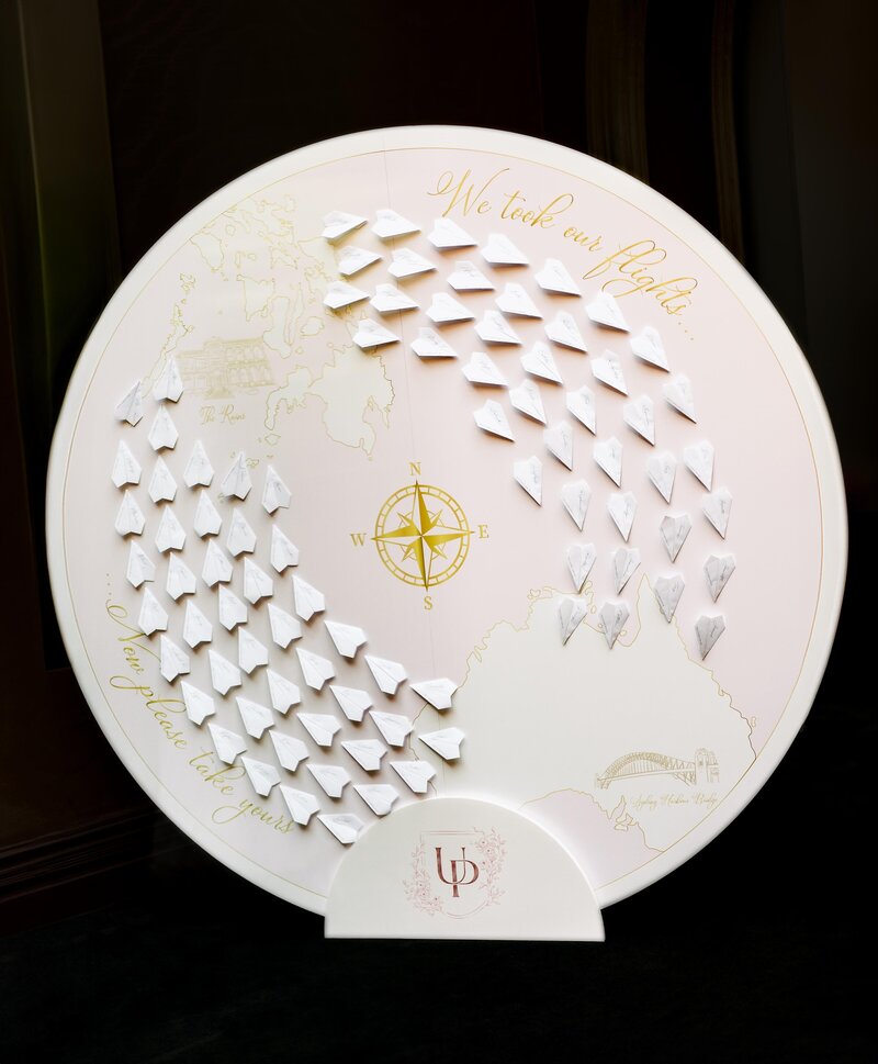 We were particularly proud of these paper aeroplane seating chart. Showing flights between the Phillipines and Australia, it brought guest on board the narrative of Pauleen and Ulysis' story.