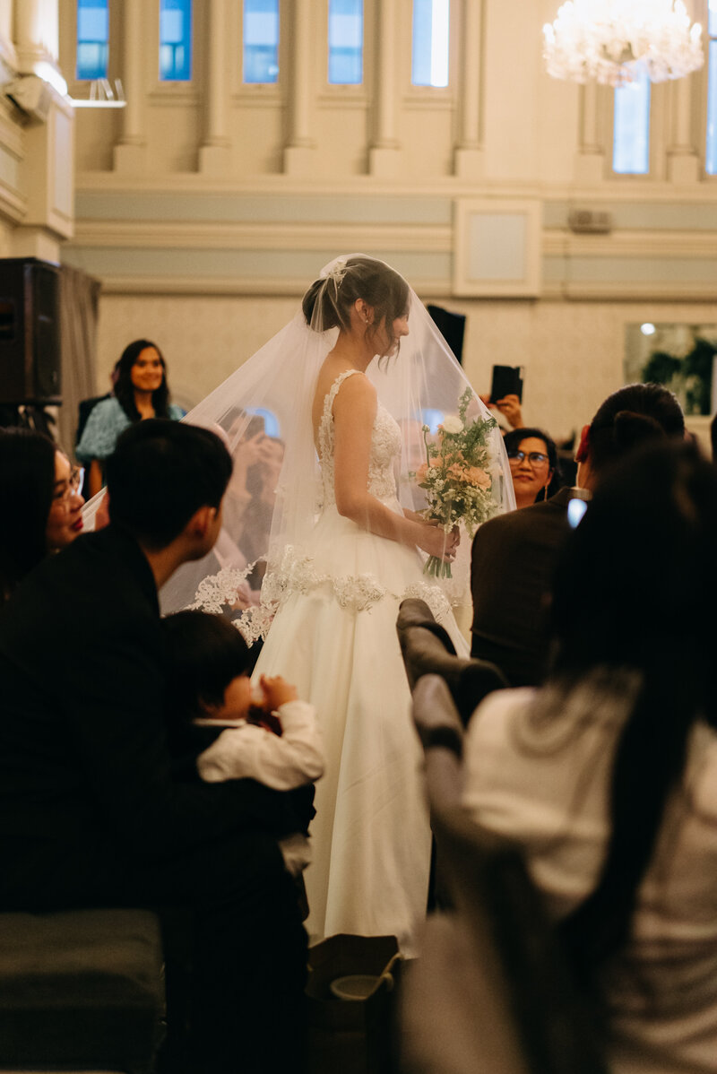 The QVB Tea Room is sizeable enough for the couple's guest size to have both their wedding ceremony and their wedding reception there, with a short period in between to reset the space. Prior to guests entering, we liked giving our brides and grooms a moment to savour their wedding space privately -it would be their only opportunity to do so. Pauleen and Ulysis' reactions were beautifully captured here: