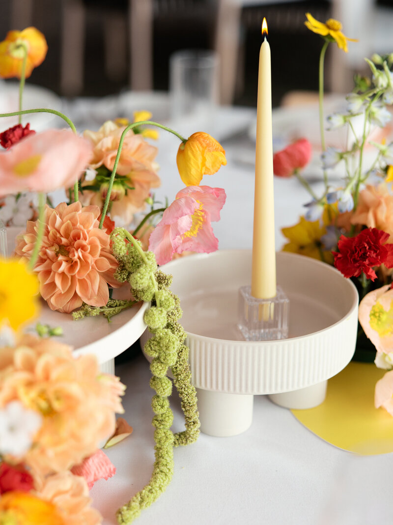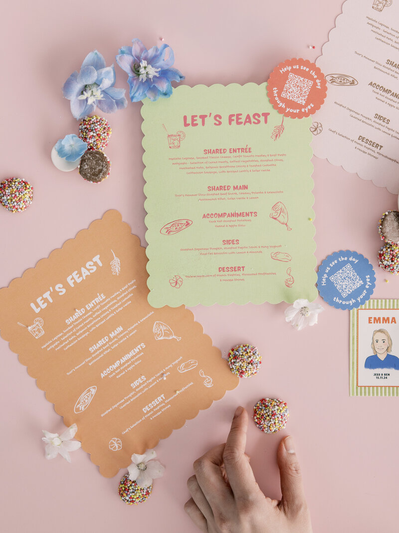 In terms of wedding styling, Jess and Ben didn't start with a defined look, but they knew they wanted it to be fun and colourful. We took our time to understand their sense of aesthetics, including a visit to their home, where we saw many modern and eclectic homewares. From there, a vision was born!